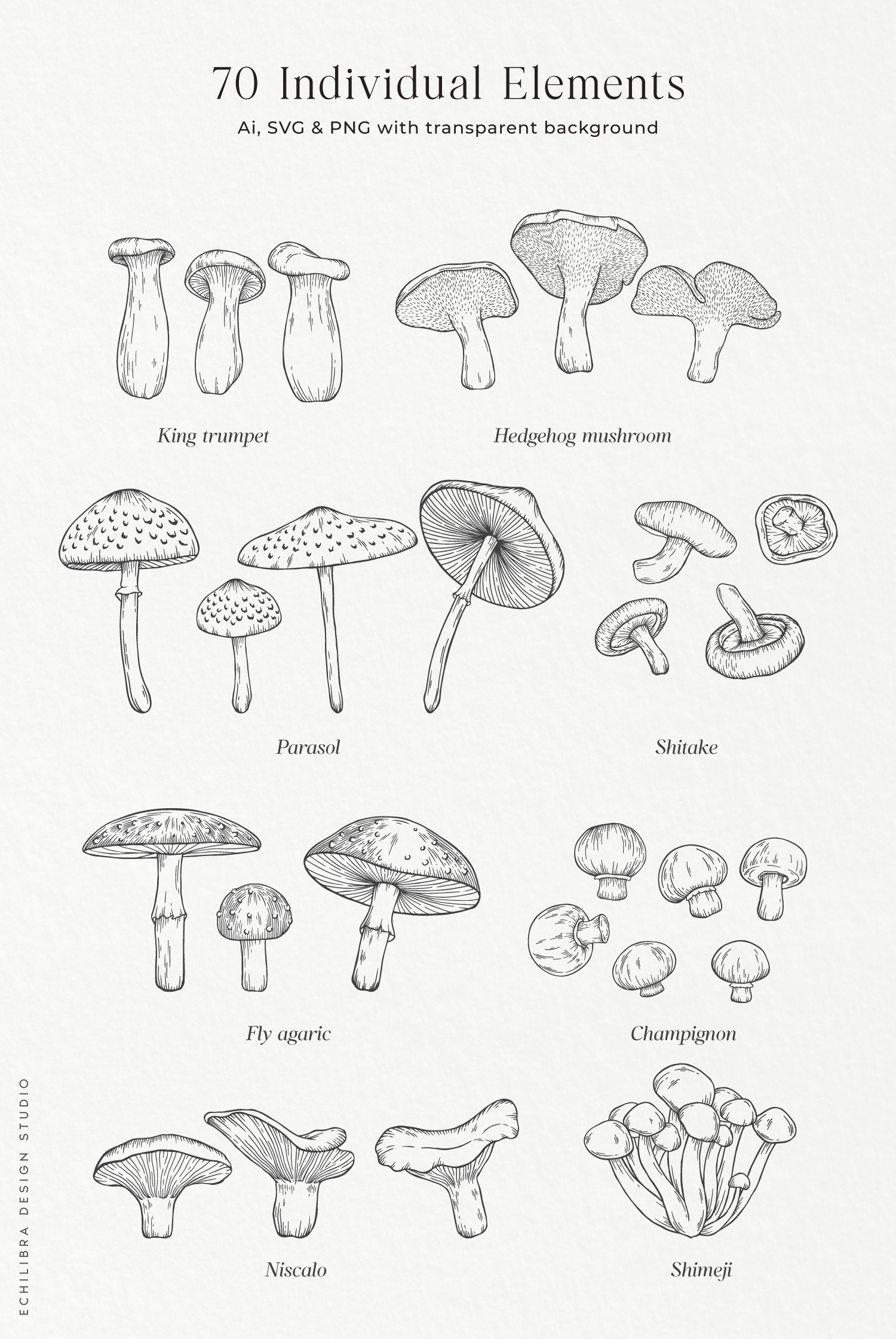 Hand-Drawn Mushrooms